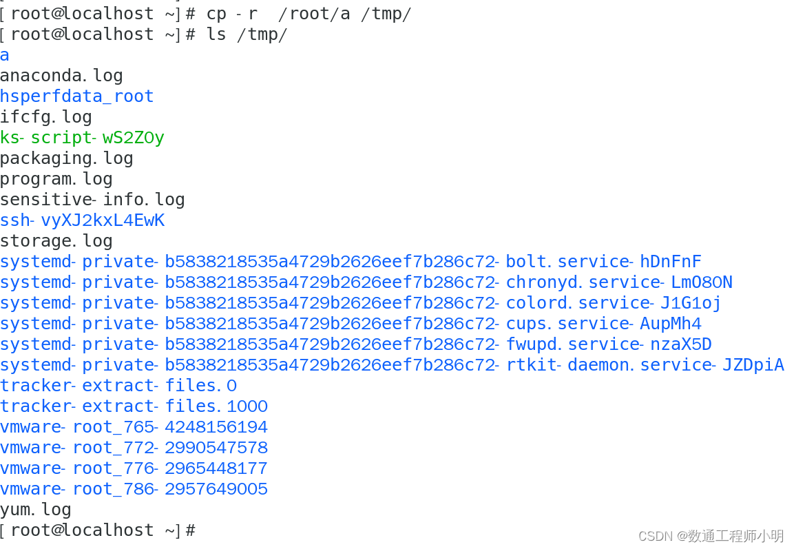 • cp -r /root/a /tmp