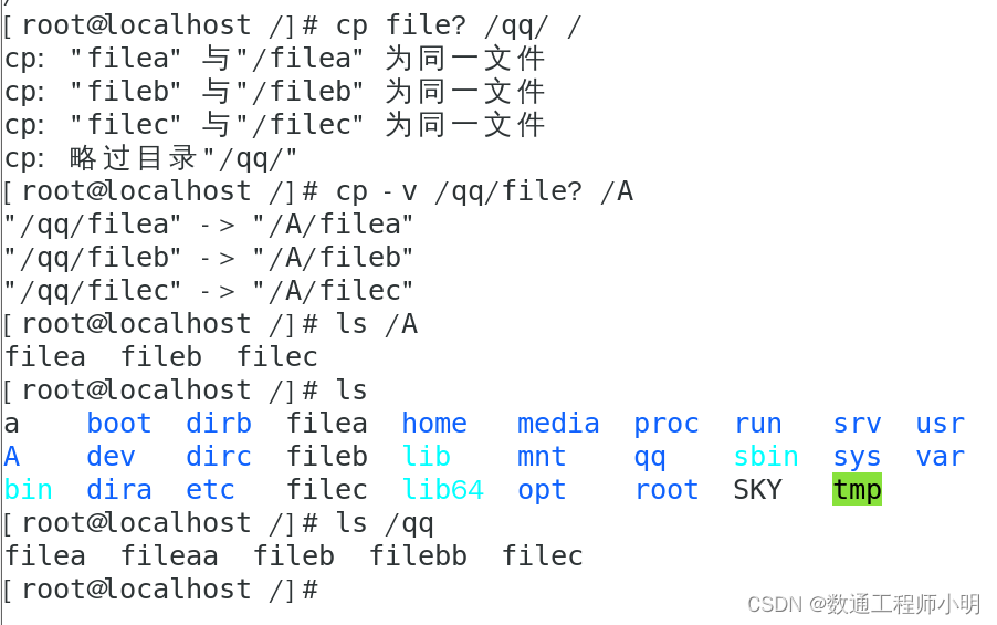 • cp -v /sky1 /tmp