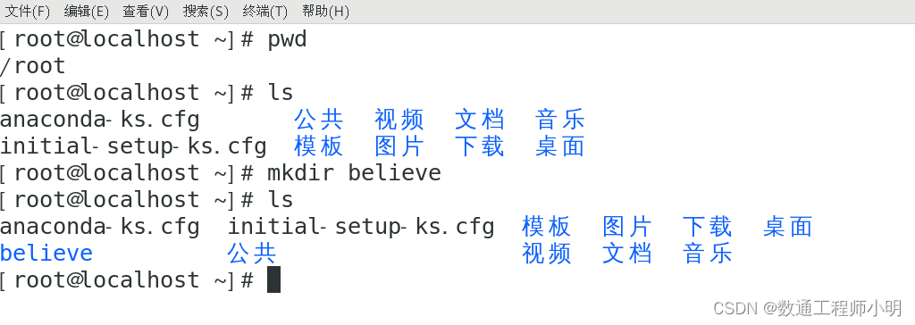 • mkdir belive:当前路径创建一个belive目录。