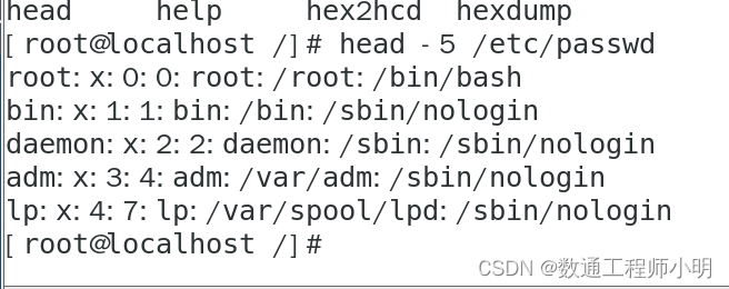 • head -5 /etc/passwd