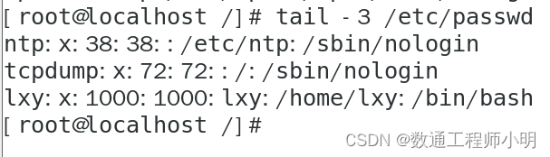 • tail -3 /etc/passwd