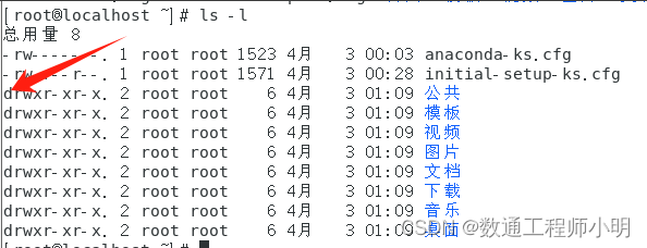 • 第一个“d”代表是文件夹,类似于Windows中的文件夹。