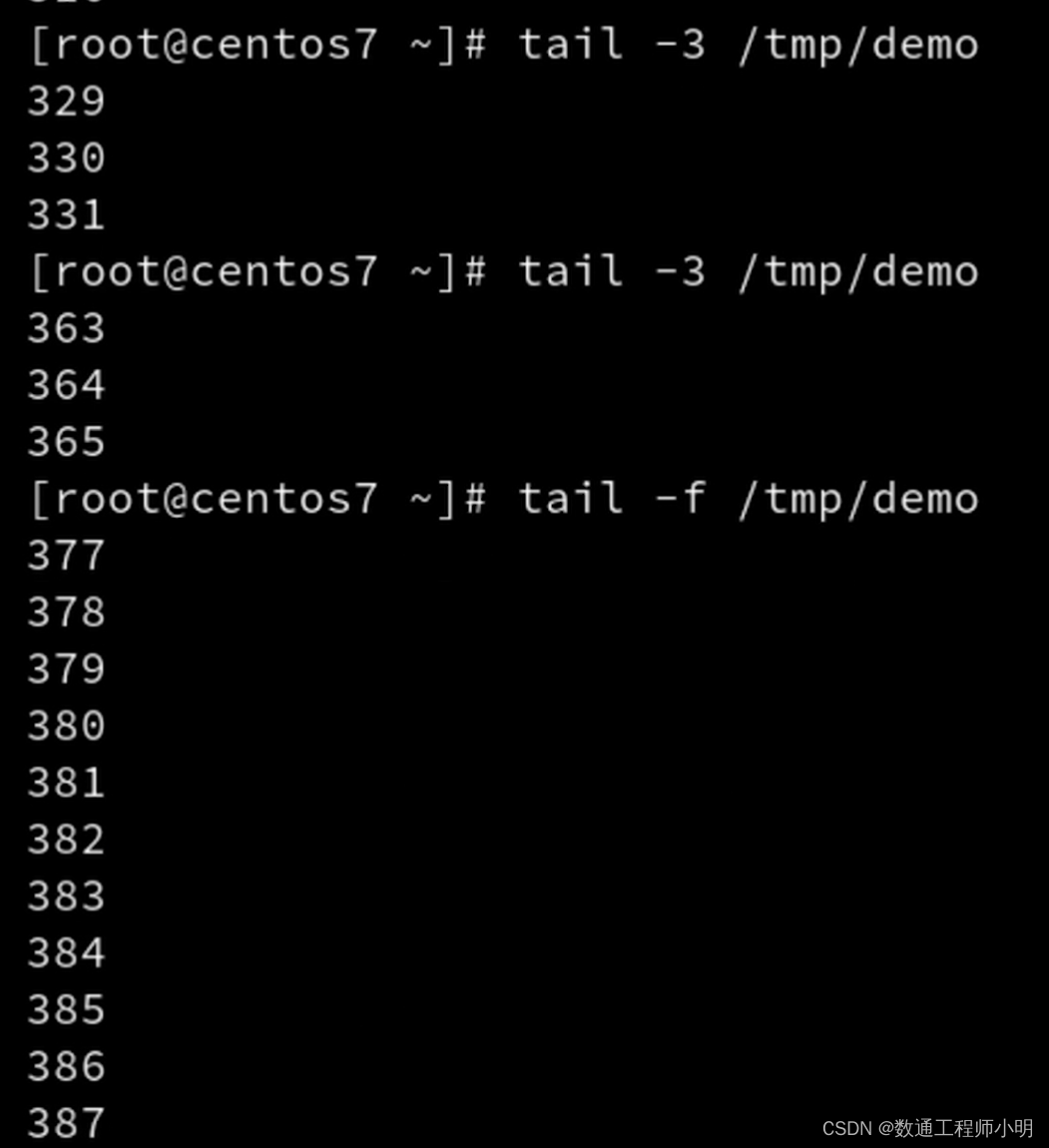• 常用参数 -f 文件内容更新后,显示信息同步更新。