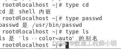 • shell(命令解释器)自带的命令称为内部命令,其他的是外部命令,使用type可以看是内部命令还是外部命令