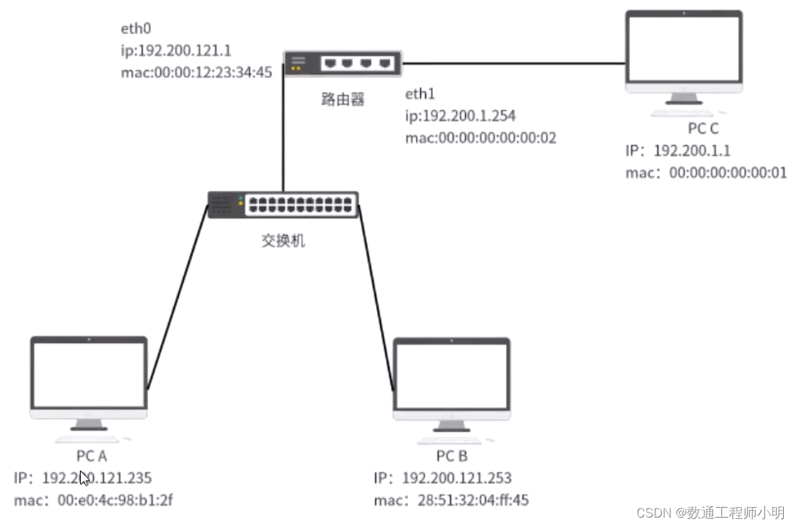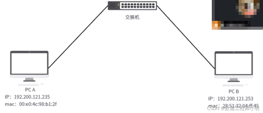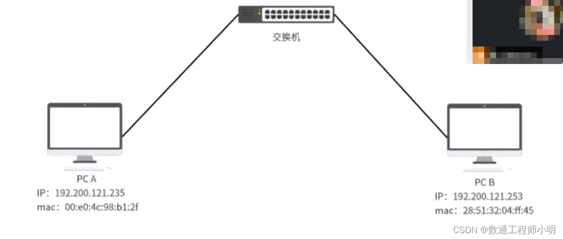 - 以PC A向PC B发送数据为例:当发送数据时,PC A会在自己的ARP缓存表中寻找是否有目标IP地址。如果找到了,也就知道了目标MAC地址,直接把目标MAC地址写入帧里面发送就可以了。