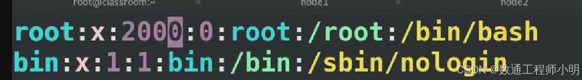 在Linux中root因为他的UID是0所以是管理员,改了root的UID他就不是了。