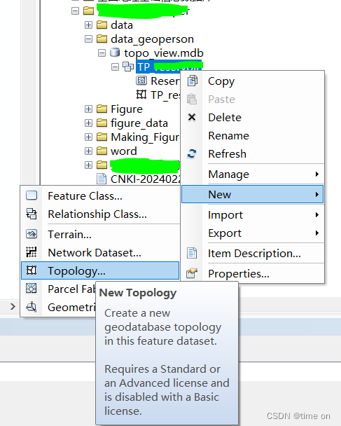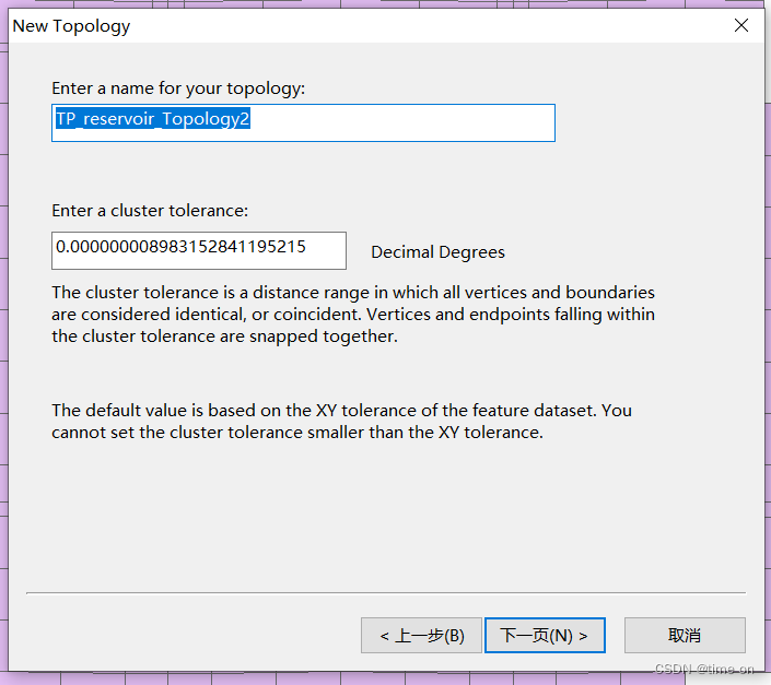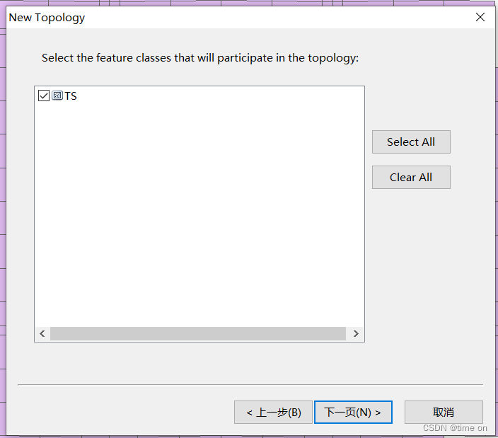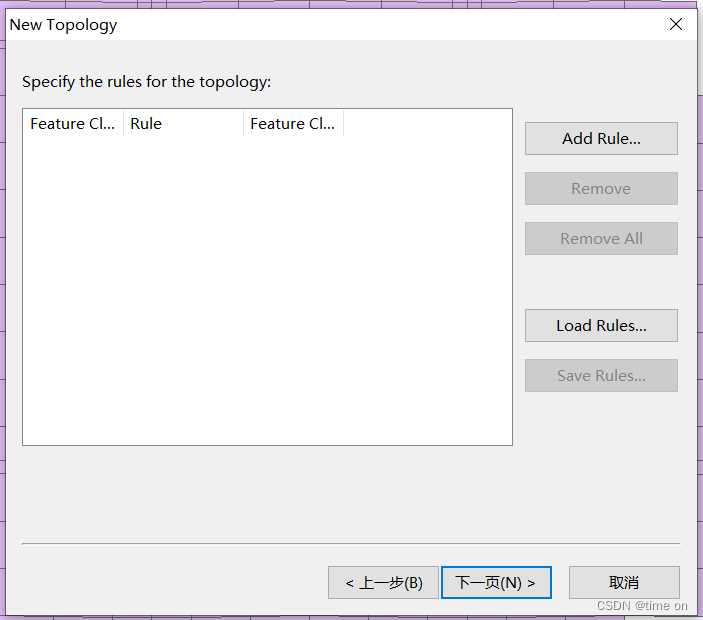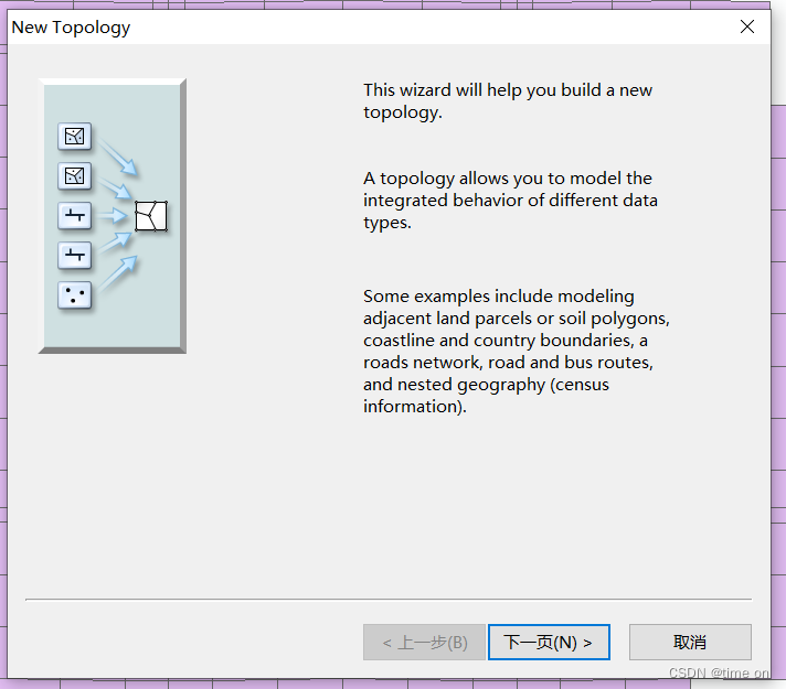 (1)创建拓扑成功。选中要素数据集,右键新建“Topology(拓扑)”,弹出对话框,默认参数设置,选择下一页即可。第三个对话框记得勾选需要创建拓扑的要素图层。最关键的操作是设置拓扑规则。