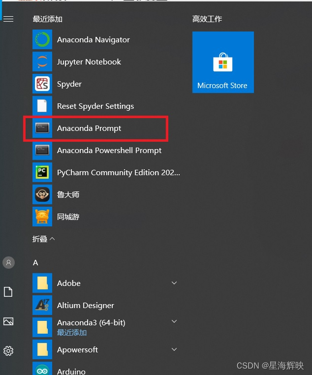在电脑左下角点击 Anaconda prompt,如下图所示