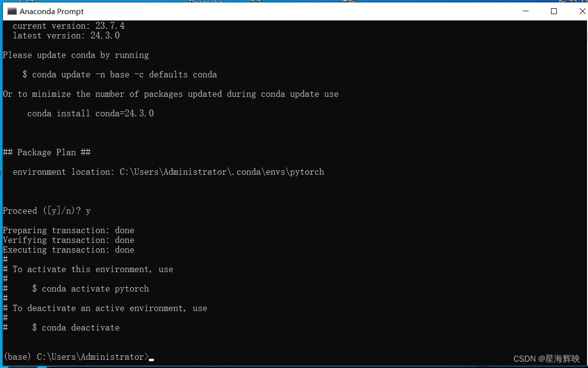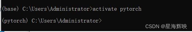 7、激活该虚拟环境。继续在命令窗口输入: activate pytorch。 按回车。