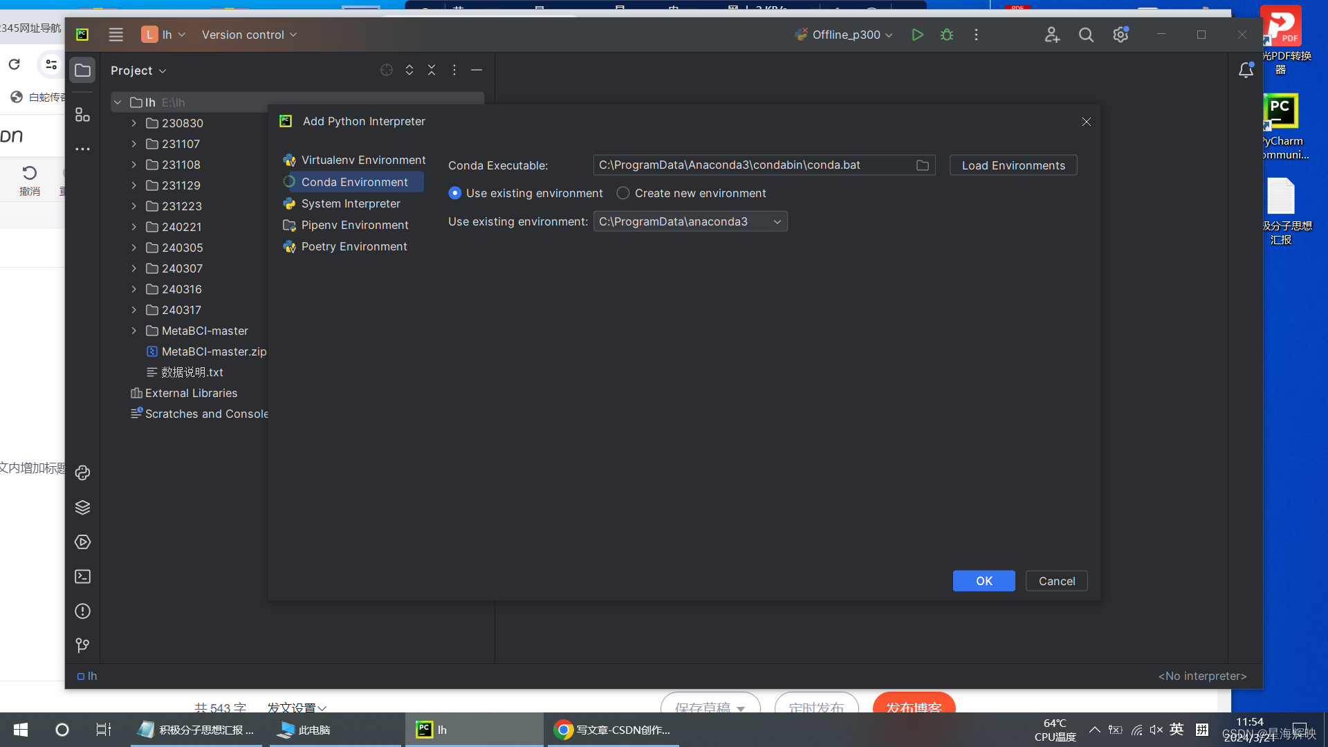 4、用annoconda 3新建一个虚拟环境, pycharm工作时得用这个虚拟环境。