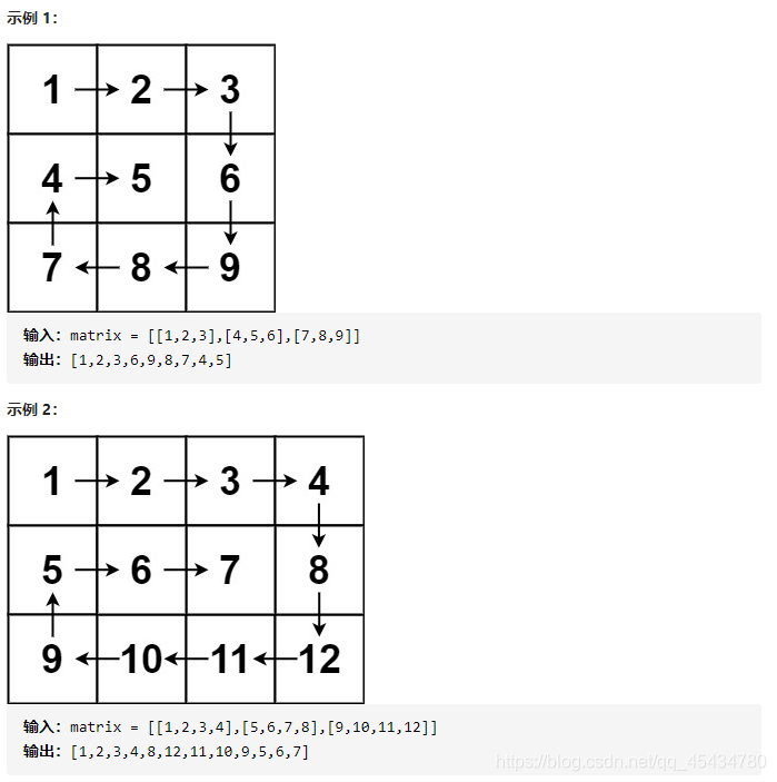 给你一个 m 行 n 列的矩阵 matrix ,请按照 顺时针螺旋顺序 ,返回矩阵中的所有元素。