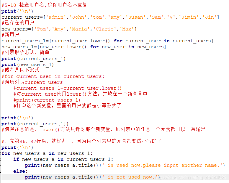 比如,这段文字的好几行之前写过lower()这个方法,在存储用户的名字之前,因为用户填写的大小写不统一,程序员喜欢把它们都先用lower()函数改成小写的,统一了之后,显示这些信息时再转换成合适的大小写。