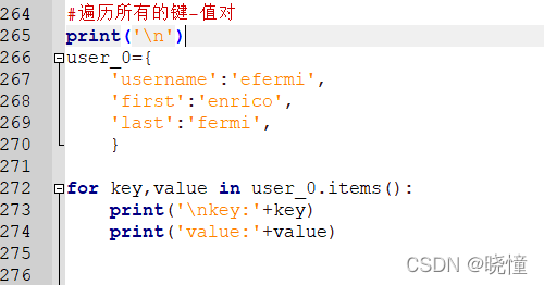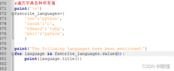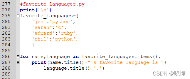 #遍历所有的键-值对:for name,language in favorite_languages.items():