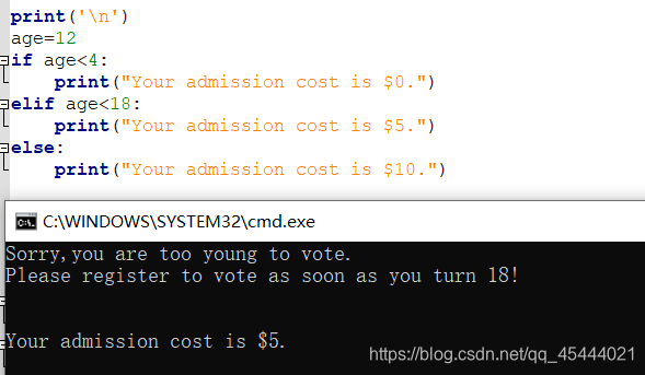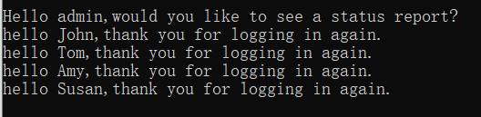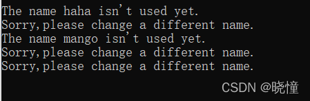 小总结:如果只想执行一个代码块(即,三选一),就使用if-elif-else。如果要运行多个代码块,就使用一系列独立的if语句