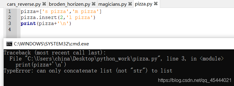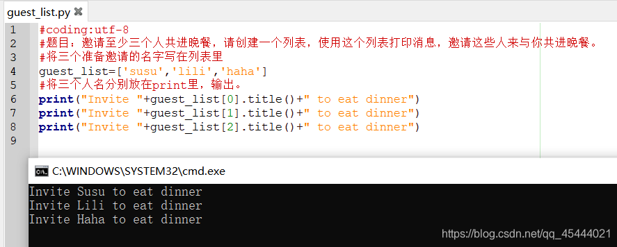 Python使用“+”合并字符串。