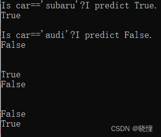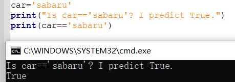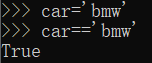第一行是给car赋值,第二行是看car是否等于'bmw',如果是的话,就是True