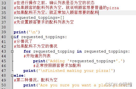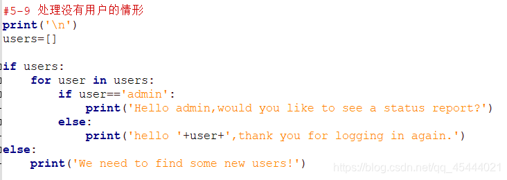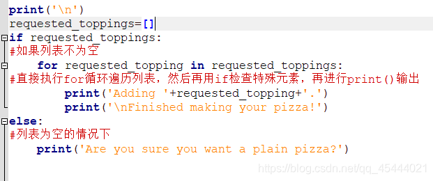 这就和前面的检查特殊元素不同了,不是直接执行for循环,而是用if 检查列表是否为空。