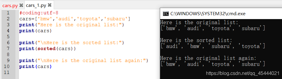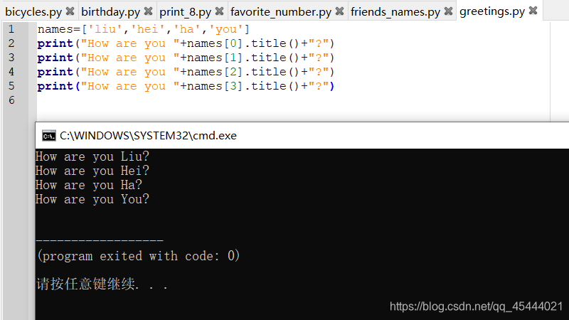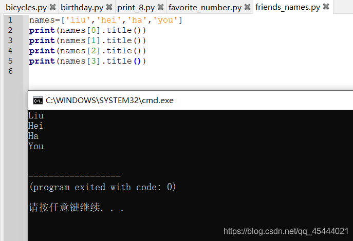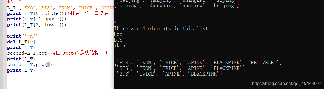 方法upper()全部大写,lower()全部小写(在存储数据时可以用lower,用户提供的大小写可能不正确,我们用lower先将字符串都转换为小写,再存储它们。显示这些信息时再转换为合适的大小写方式)
