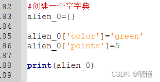 使用字典来存储用户提供的数据或在编写能自动生成大量键—值对的代码时,通常都需要先定义一个空字典。