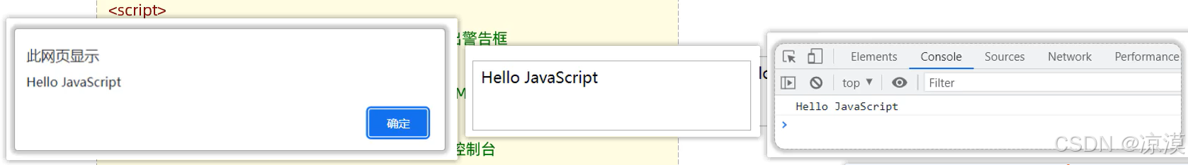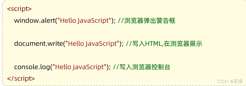 document.write("Hello JS"); //写入HTML页面