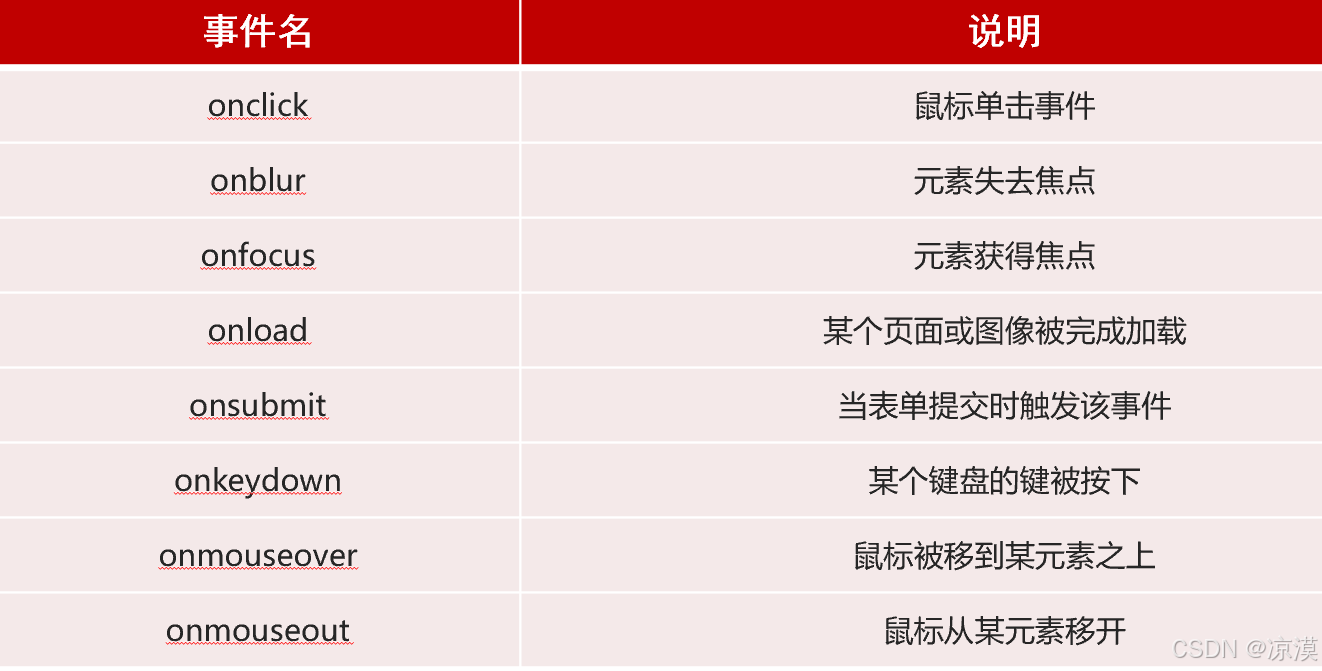 按钮被点击 、鼠标移动到元素上 、按下键盘按键