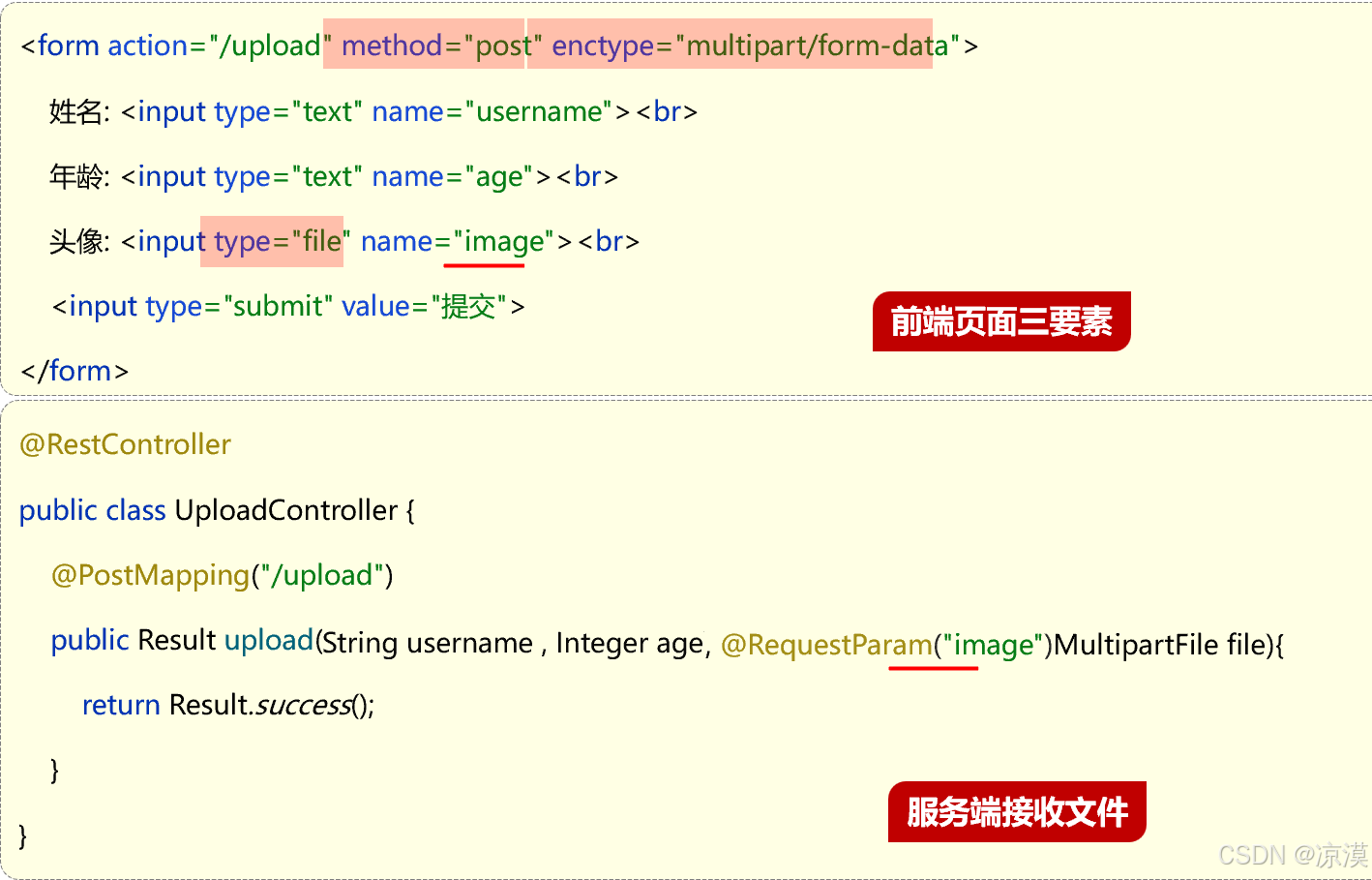 public Result upload(String username , Integer age , MultipartFile image) throws Exception {
