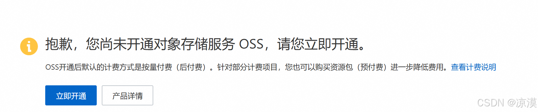 将鼠标移至产品,找到并单击对象存储OSS,打开OSS产品详情页面。在OSS产品详情 页中的单击立即开通。