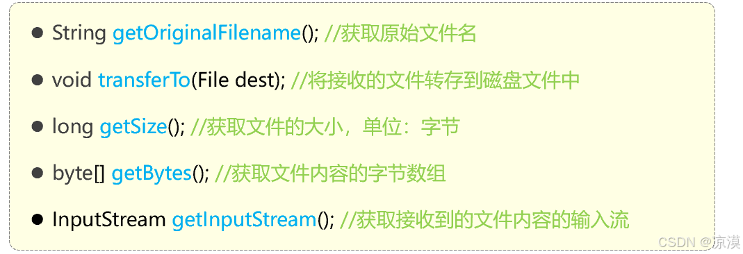 Spring 中提供了一个 API:MultipartFile,使用这个 API 就可以来接收到上传的文件。