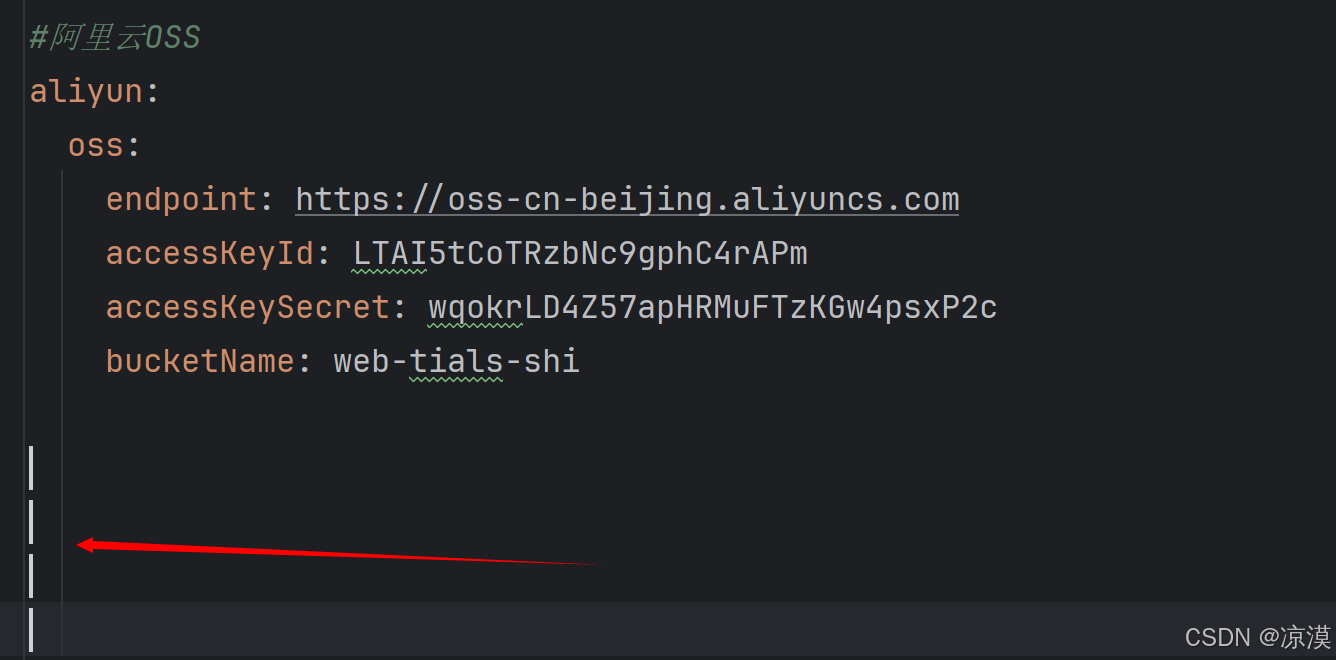 String accessKeySecret = aliOSSProperties.getAccessKeySecret();