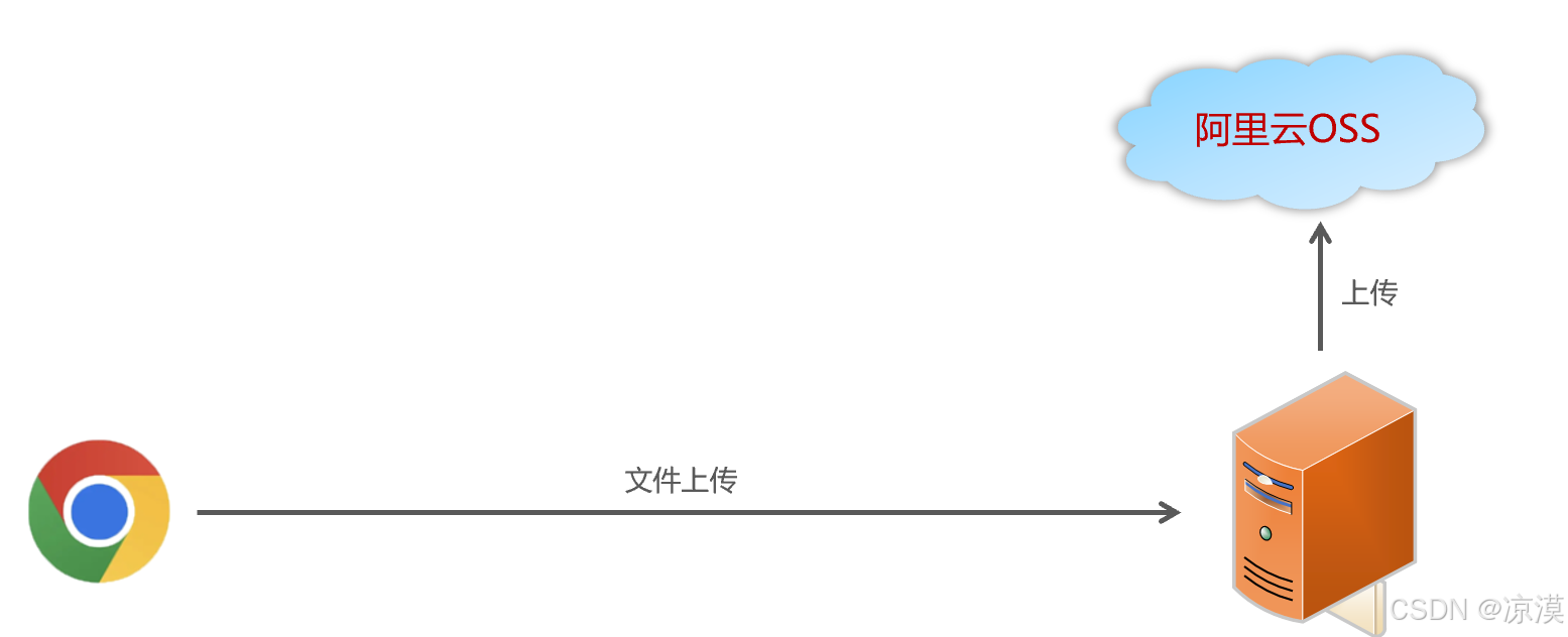 在我们使用了阿里云 OSS 对象存储服务之后,我们的项目当中如果涉及到文件上传这样的业务,在前端进行文件上传并请求到服务端时,在服务器本地磁盘当中就不需要再来存储文件了。我们直接将接收到的文件上传到 oss,由 oss 帮我们存储和管理,同时阿里云的 oss 存储服务还保障了我们所存储内容的安全可靠。