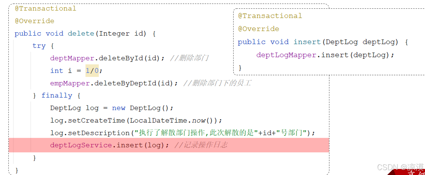 需求:解散部门时,无论是成功还是失败,都要记录操作日志。