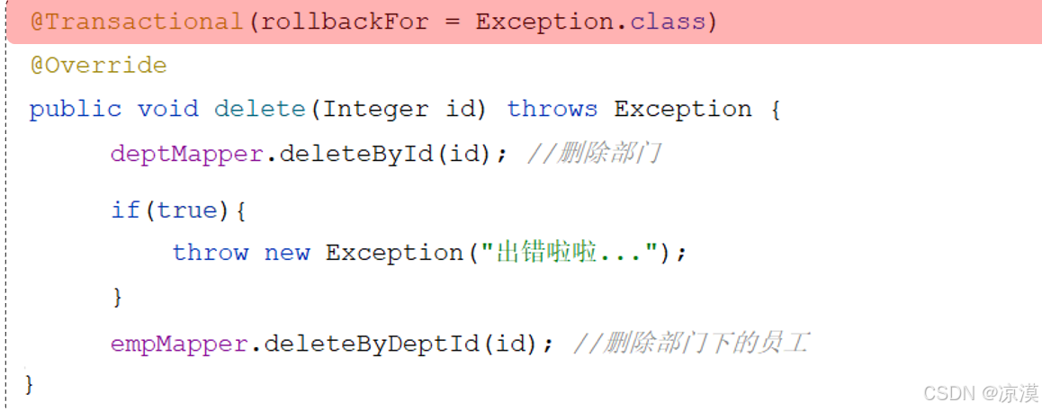 empMapper.deleteByDeptId(id); //根据部门ID删除该部门下的员工