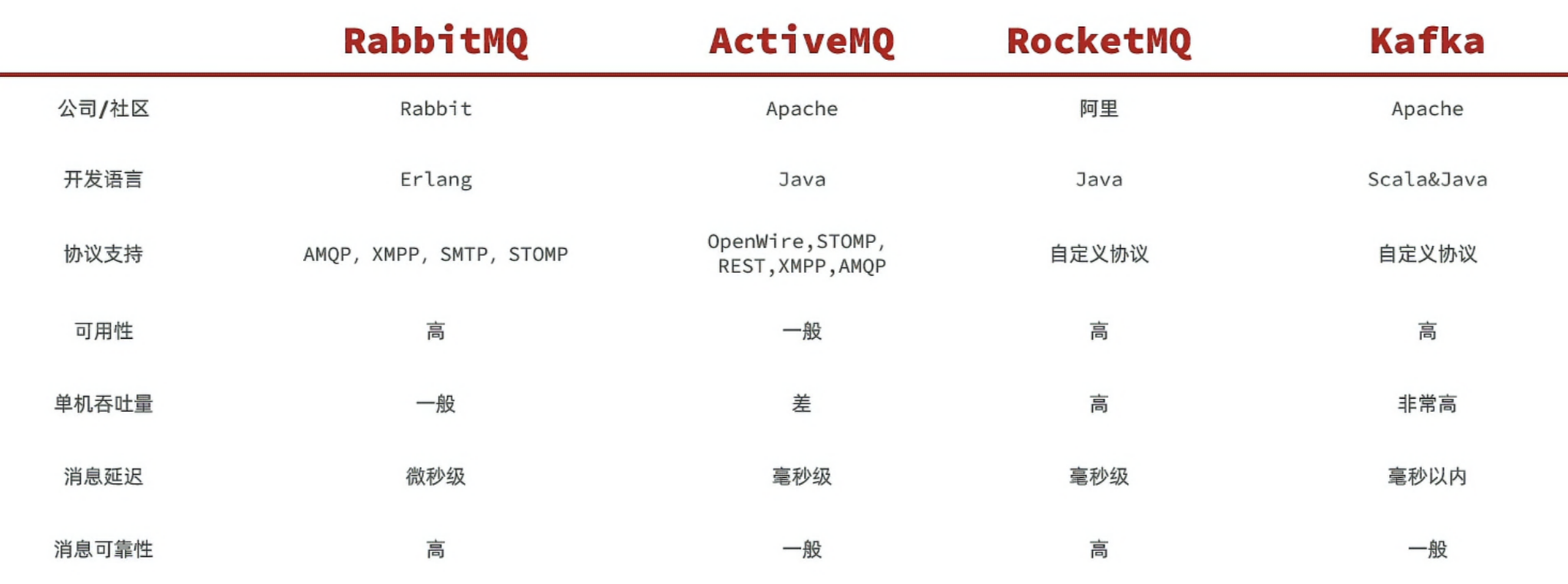 吞吐量:优先选Kafka和RocketMQ这种更高吞吐的。