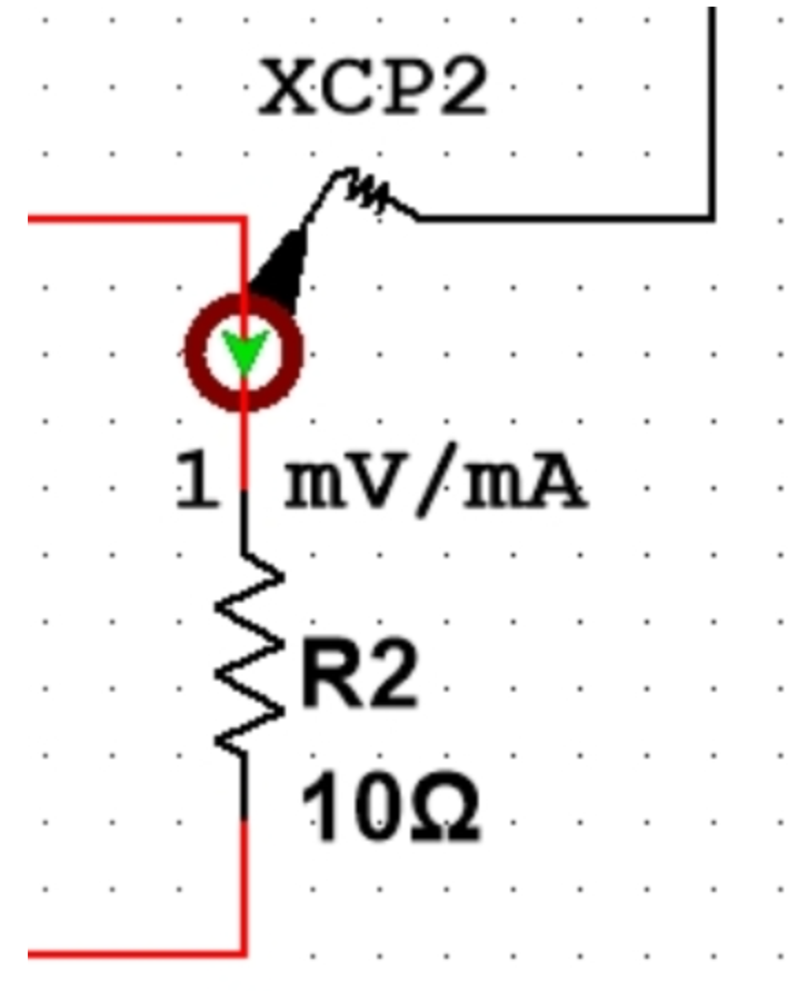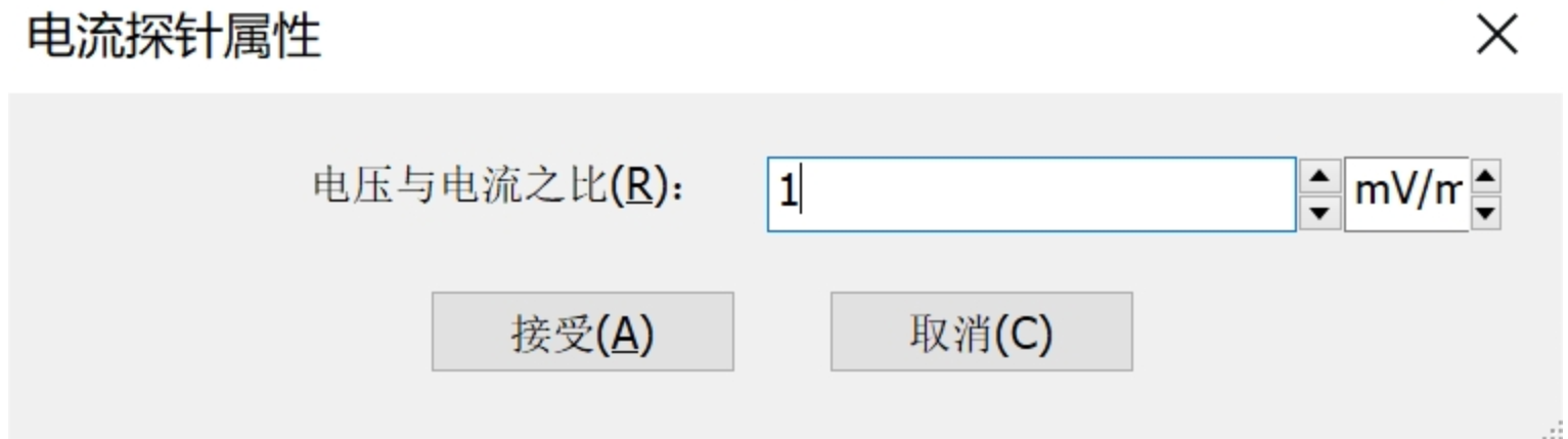 此时我们设置电流探针属性,设置电压电流之比是1mV/mA,意味着回路中流过的电流是1mA,则电流钳输出的电压为1mV。