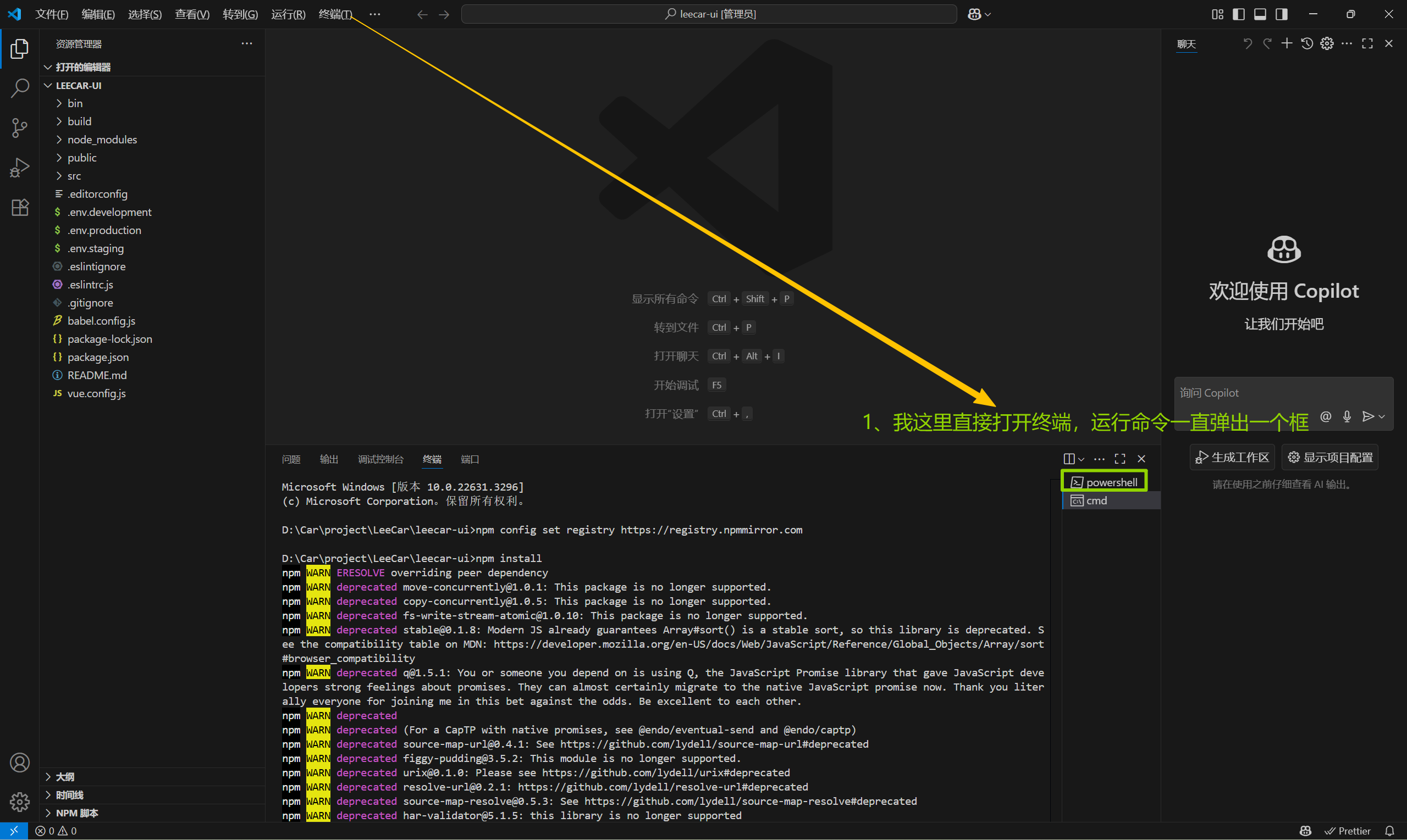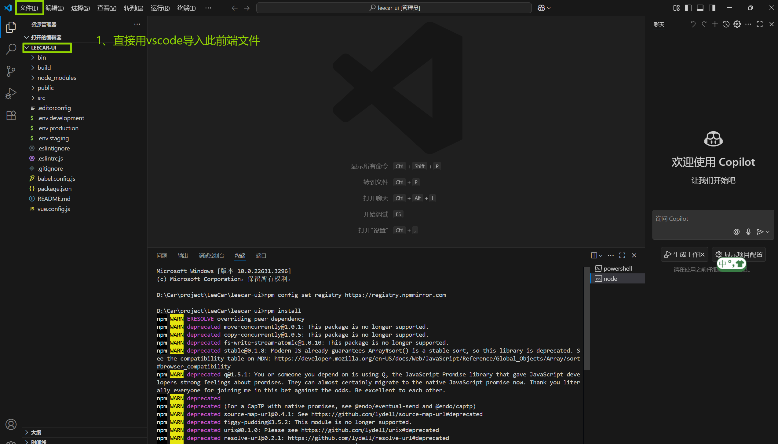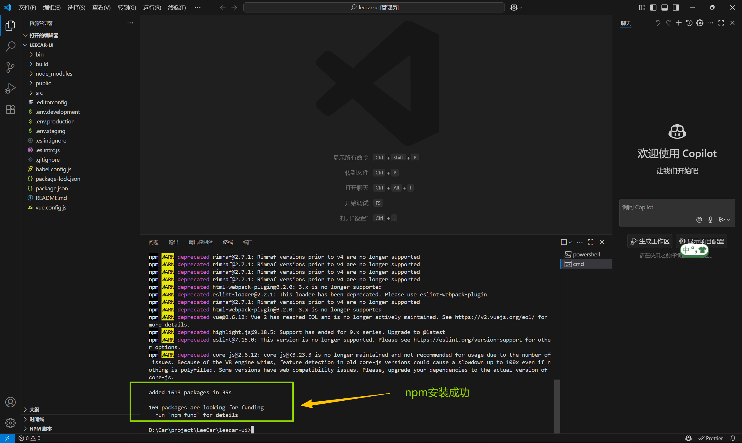 npm 安装过程可能需要一些时间,特别是对于大型项目