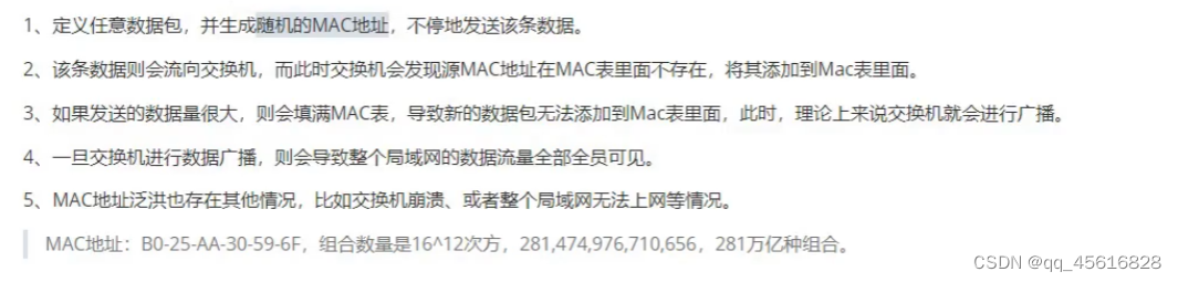 packet=Ether(src=randmac,dst=randmac)/IP(src=srandip,dst=drandip) # 随机链路层