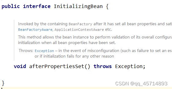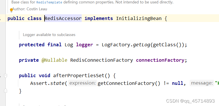 从这张图我们可以观察到RedisTemplate 实现了RedisAccessor,而RedisAccessor又实现了InitializingBean,在InitializingBean只有一个方法,子类重写了这个方法,在里面会创建序列化器