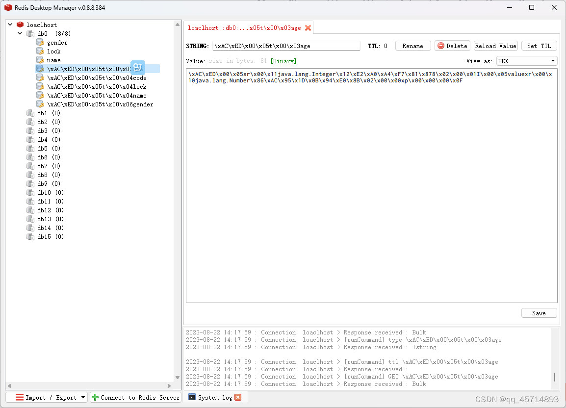 通过图形化界面,我们能观察到,key和value都是被序列化的