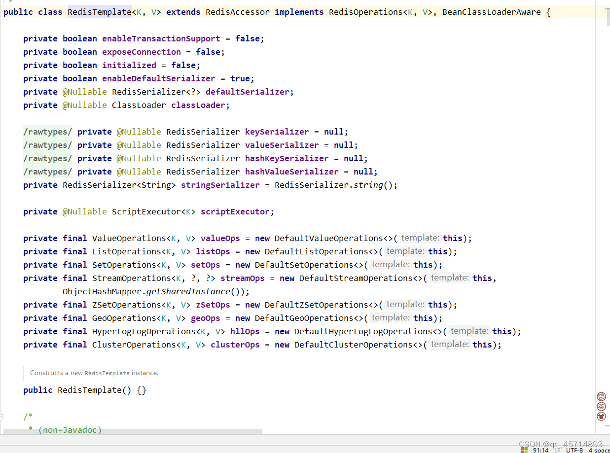 接下来我们通过观察源码来更改key的序列化,通常value我们需要加密,而key的话不需要使用java自带的序列化器