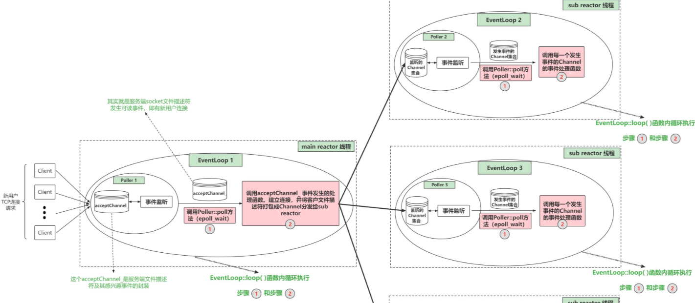 首先,我们需要了解muduo框架是一个主从reactor框架。