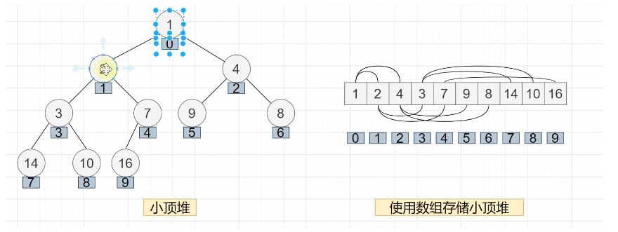 要满足堆的性质,需要父节点与子节点比较,交换位置。