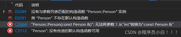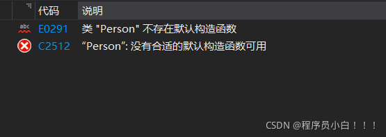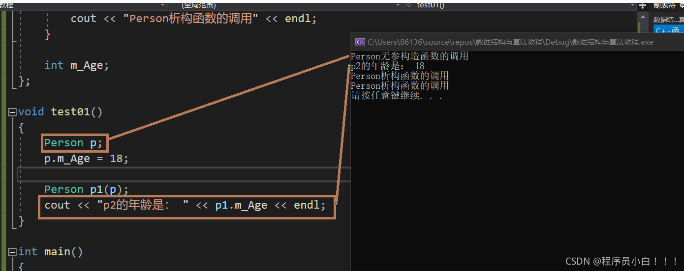 /*Person(const Person& p) //这块拷贝构造函数是被注释掉的 但是输出结果的话 看下图