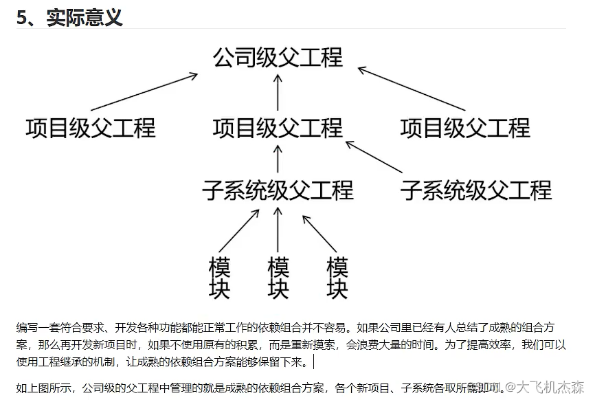 通过在父工程中为整个项目维护依赖信息的组合既保证了整个项目使用规范、准确的jar包;又能够将以往的经验沉淀下来,节约时间和精力。
