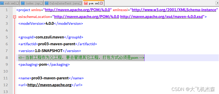只有打包方式为pom的Maven 工程能够管理其他Maven 工程。打包方式为pom 的Maven 工程中不写业务代码,它是专门管理其他 Maven工程的工程。
