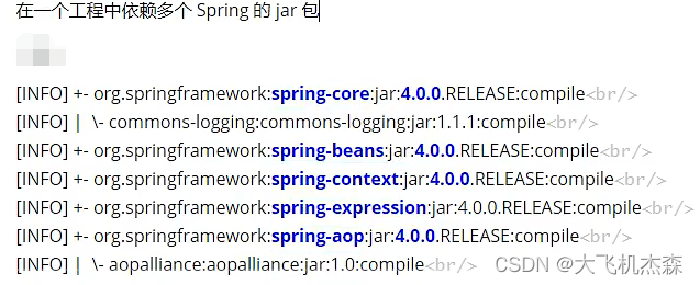 - 使用同一个框架内的不同jar包,它们应该是同一个版本,所以整个项目中使用的框架版本需要统一。