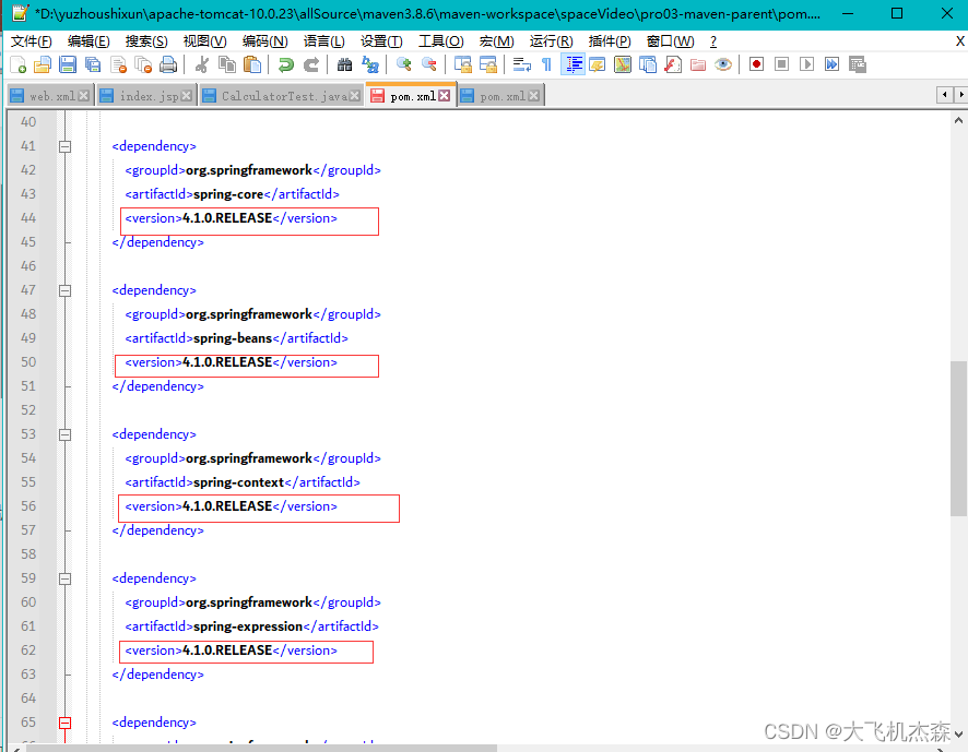 比如使用Spring时要求所有Spring自己的jar包版本必须一致。为了能够对这些jar包的版本进行统一管理,我们使用继承这个机制,将所有版本信息统一在父工程中进行管理。