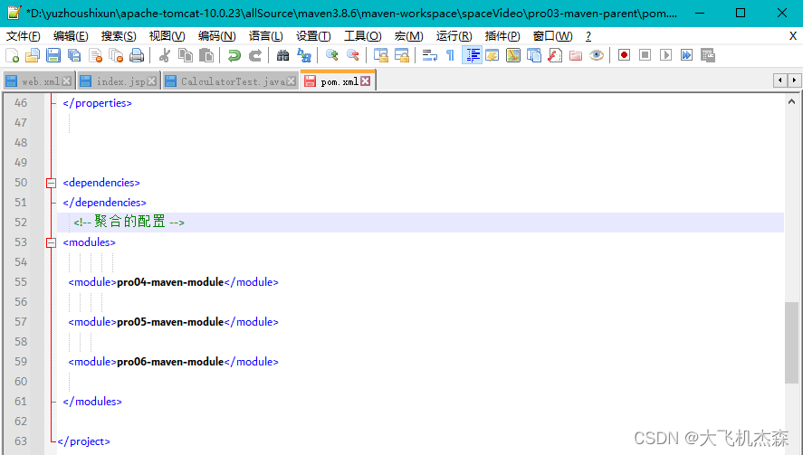 创建好了之后我们再打开父工程的pom.xml文件,会发现新增了这几个标签项
