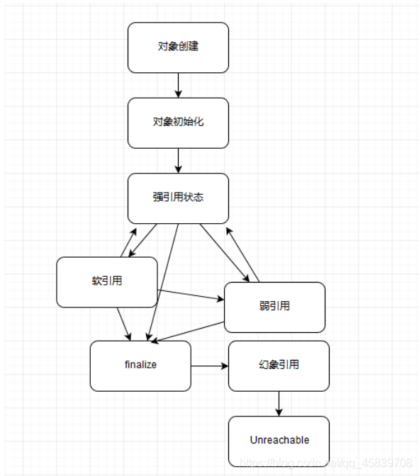 软可达(Softly Reachable),就是当我们只能通过软引用才能访问到对象的状态。 弱可达(Weakly Reachable),类似前面提到的,就是无法通过强引用或者软引用访问,只能通过弱引用访问时的状态。这是十分临近fnalize状态的时机,当弱引用被清除的 时候,就符合fnalize的条件了。