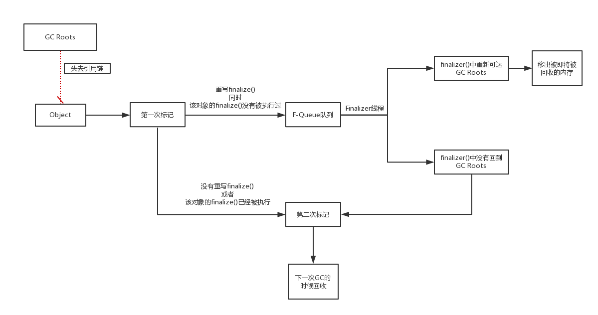 C,finalize方法,这个选项错就错在,这个方法一个对象只能执行一次,只能在第一次进入被回收的队列,而且对象所属于的类重写了finalize方法才会被执行。第二次进入回收队列的时候,不会再执行其finalize方法,而是直接被二次标记,在下一次GC的时候被GC。