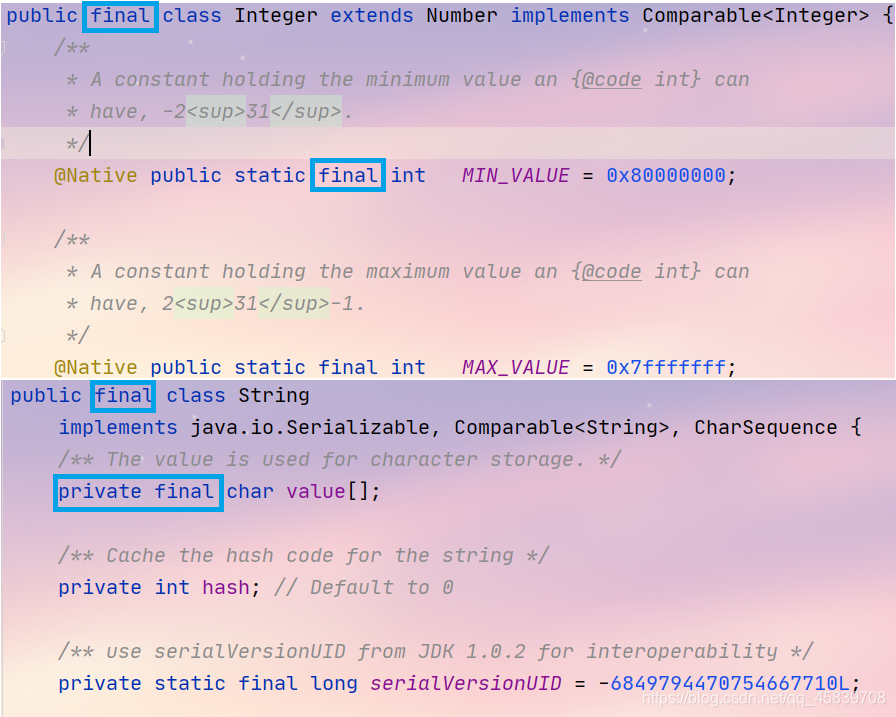 ② 大部分属性用 final 修饰,代表不可变;即使没有 final 修饰,没有任何可以修改属性的方法;都足以说明:它们的属性是不可变的。